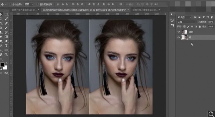 3、【Ctrl+J】复制图层,命名为祛痘,使用【污点修复画笔工具】进行人物皮肤祛痘。