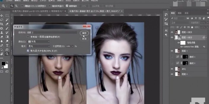 教程通过高反差和中性灰http://www.yuucn.com/tags/38464/给人物进行精细修图,首先需要污点修复画笔工具对进行人物皮肤祛痘,再用液化工具对人物形体进行调整,再用高反差保留调整皮肤上比较明显的脏东西,用中性灰图层(新建图层,填充50%中性灰),创建剪贴蒙板,画笔大小和流量改为15%,最好新建观察组,便于观察(新建黑白,曲线),把脸上需要修的地方修平,亮的涂亮,暗的涂暗。具体如何操作还是通过教程来学习一下吧。