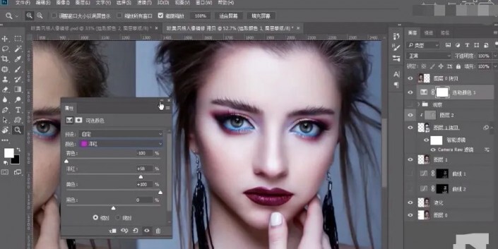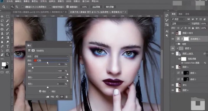 9.调整嘴唇颜色,新建可选颜色,不够红再调整一遍红色和洋红。填充蒙版黑色,擦出嘴唇。