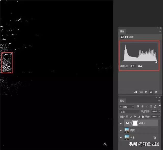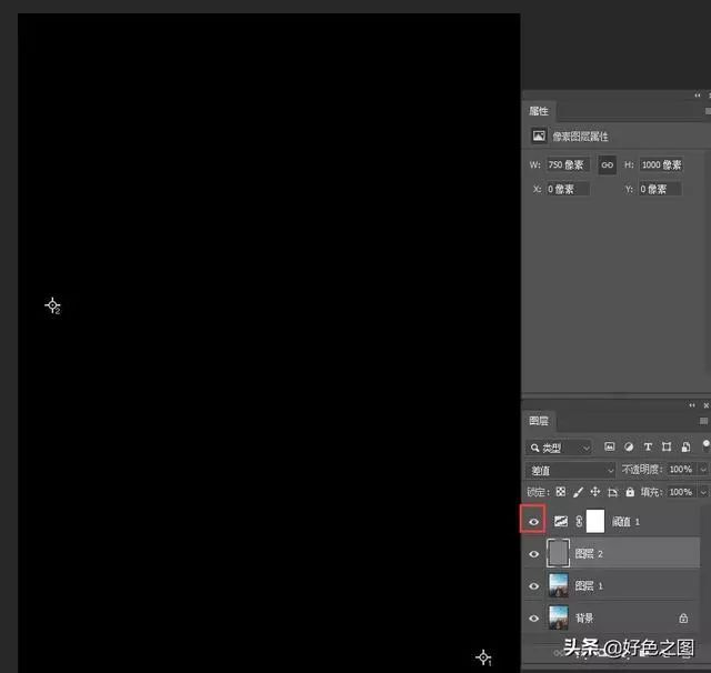 接着把阈值图层前方的眼睛点上,打开预览,照片又变成了纯黑色: