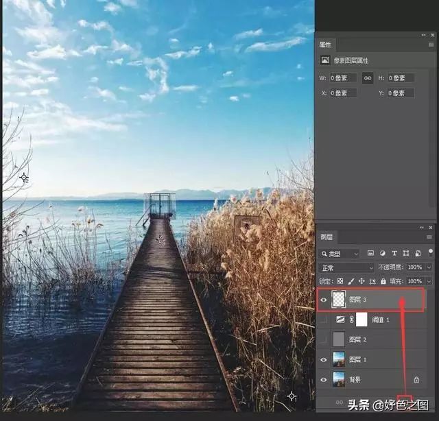 接下来,点击图层面板下方的新建透明图层按钮,为照片增加一个透明图层: