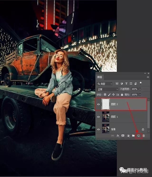 接下来,在图层面板下方,点击"新建图层"按钮,建立一个空白图层: