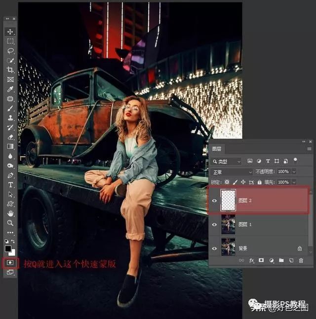按下快捷键http://www.yuucn.com/photoshop/jiaocheng/110097.htmlQ,进入快速蒙版http://www.yuucn.com/tags/38847/(不了解快速蒙版的同学请翻阅我之前的教程第11节《快速蒙版与画笔工具》),这时新建的图层会变成红色: