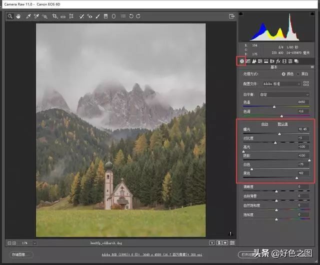在PS软件中打开图片,会自动弹出Camera Rawhttp://www.yuucn.com/photoshop/jiaocheng/2015/136179.html插件,先从基本面板开始调整,将照片的曝光调整至正常,将暗部因曝光不足失去的细节还原回来: