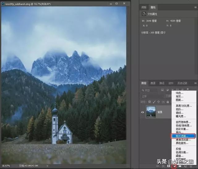 点击图层面板下方的太极图标志,新建"照片滤镜"调整图层: