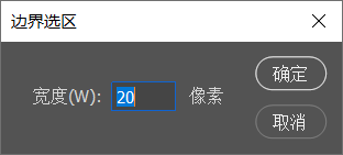(2)执行“边界”命令可以打开“边界选区”对话框,如下图所示。在对话框中可以设置一个宽度数值,范围为1~200px,PS会以该值为基准,将原有的选区分别向内部和外部扩展,从而形成一个包围原选区的边框选区。