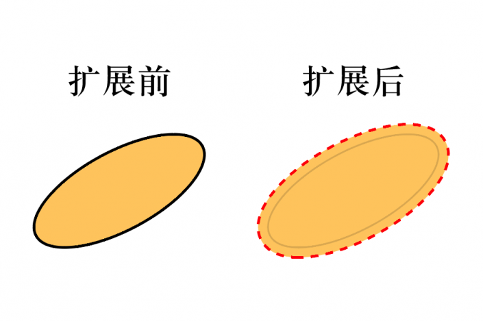 (3)在扩展选区时,PS会尽量保持选区的形状,但是如果对边角锐利的选区应用该命令,则会切掉选区的边角。