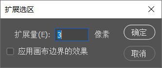 (2)执行“扩展”命令后,就可以打开“扩展选区”对话框,如下图所示。在对话框中可以设置一个扩展量,范围为1~100px,PS将按照指定数量的像素向外扩展选区。