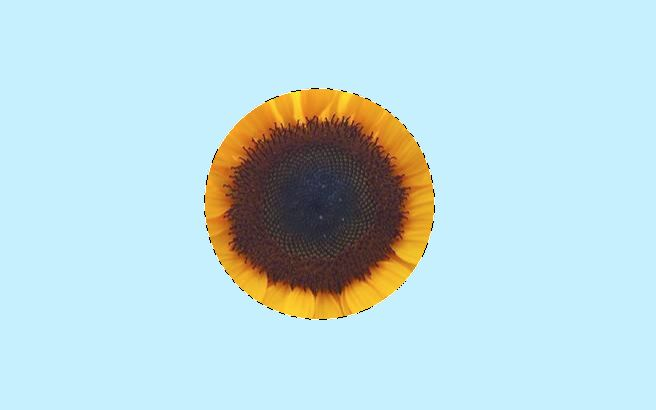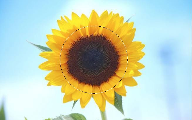 上图是一株向日葵,我们创建一个圆形选区,在没有设置羽化时,效果如下: