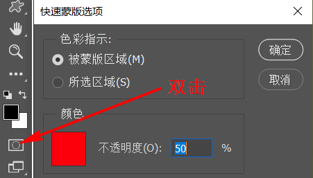 (1)在工具箱中双击“快速蒙版”按钮,可以打开“快速蒙版”选项对话框;