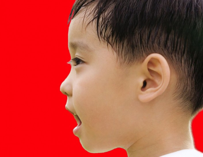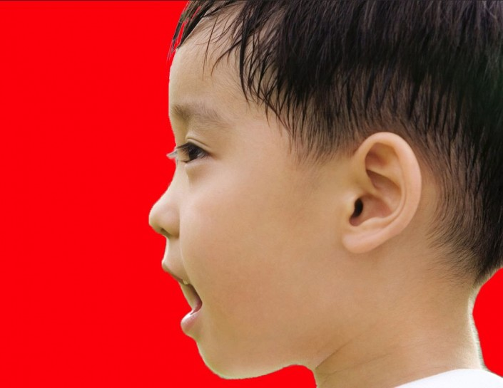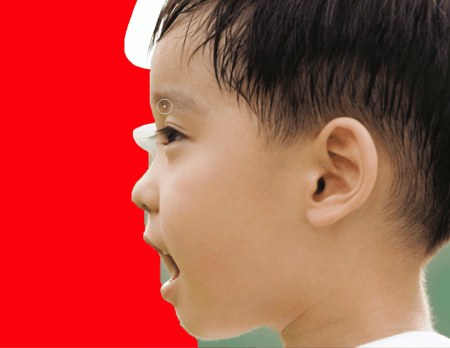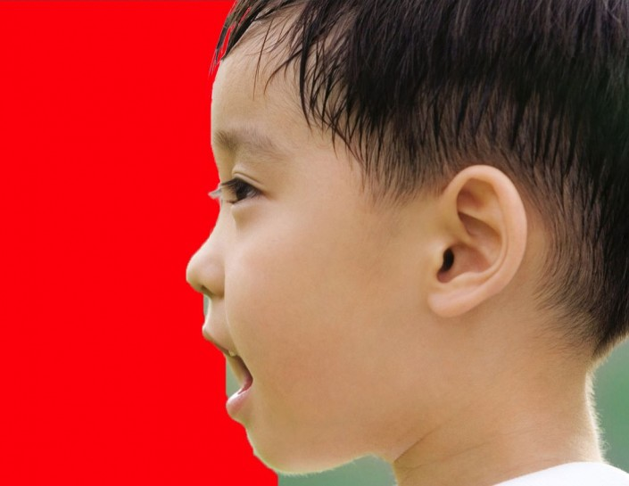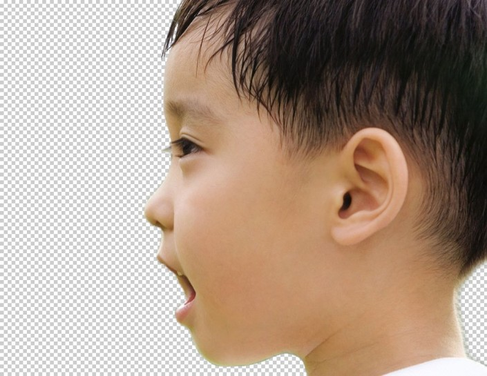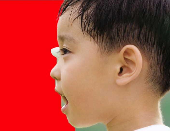 b)小男孩的睫毛,睫毛有一定程度的虚化,并且与背景融合的较好,睫毛处的抠图会是一个难点;