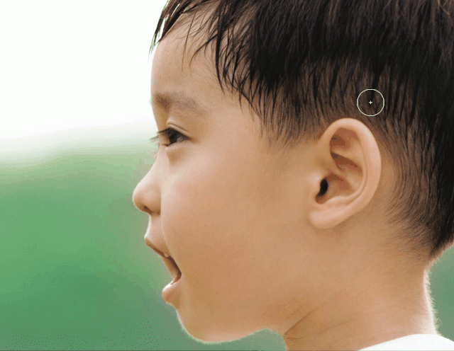 e)但是你会发现,经过【背景橡皮擦工具】处理后,头发仍有一些白色杂边,此时可以用【橡皮擦工具】放心地擦除。