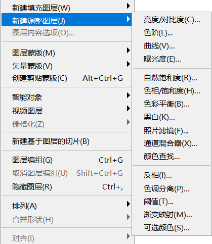 在PS中,图像色彩与色调的调整方式主要有两种——【图像】-【调整】下拉菜单中的命令、调整图层;