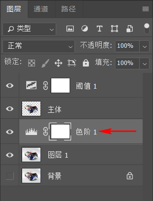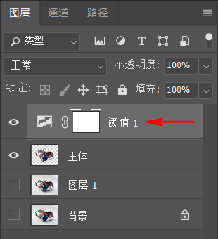 (1)选中“主体”图层,在其上方添加一个【阈值】调整图层;