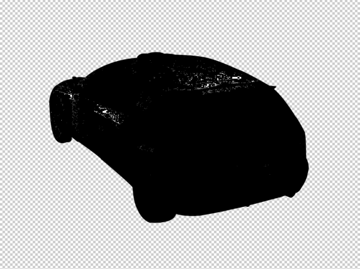 (4)使用调整图层来选取汽车的投影,在选取投影的同时,顺带也把汽车的顶部天线选取了,一举两得,正好解决了第(3)步的麻烦。