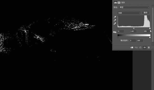 (4)打开色阶对话框,将高光滑块(白色)向左侧拖动,直到投影完整地显示出来,与此同时,背景也变成了白色;