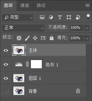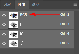 (6)此时将“主体”图层隐藏,选中“图层1”(因为色阶调整图层作用的对象是图层1),切换到通道面板,按住Ctrl键的同时单击RGB通道前面的缩略图,可载入图像的高光区域;