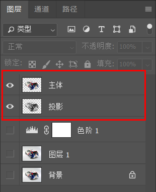 (9)至此,主体和投影已经被分别地抠了出来。