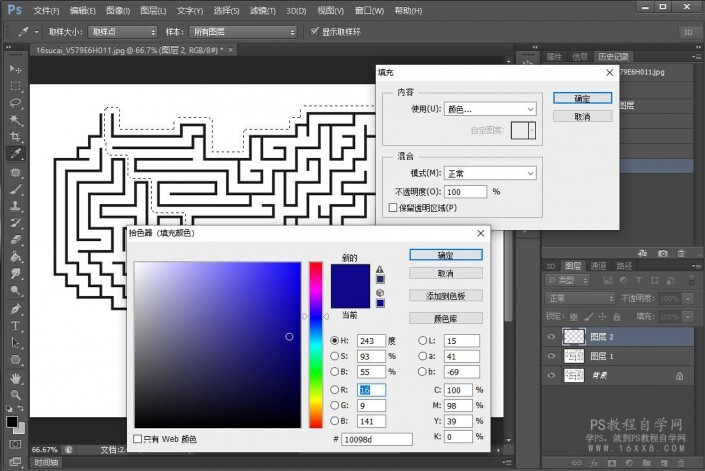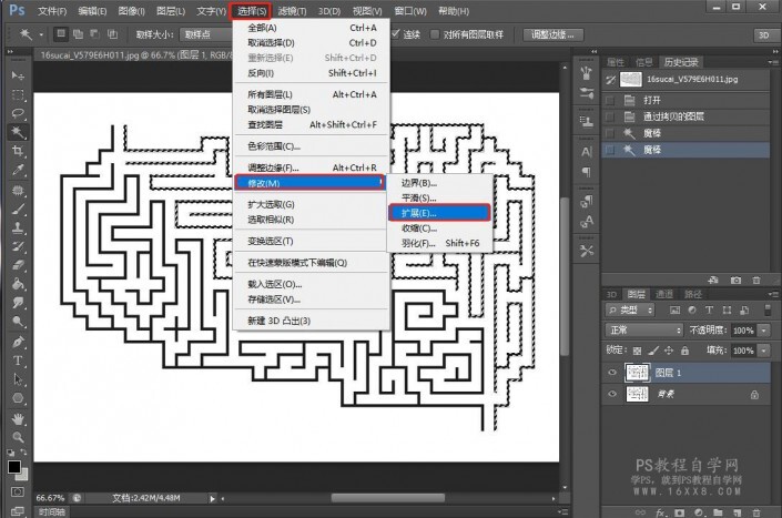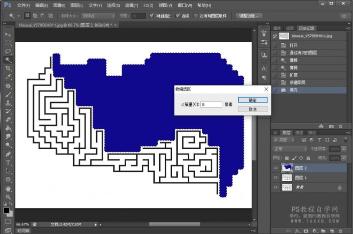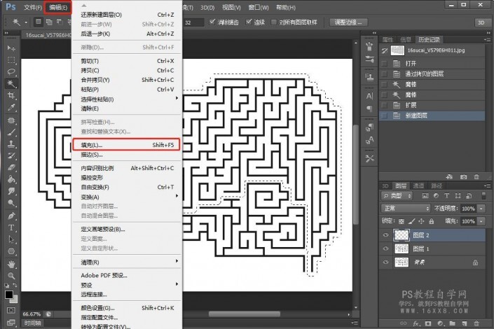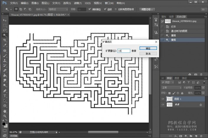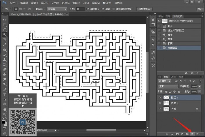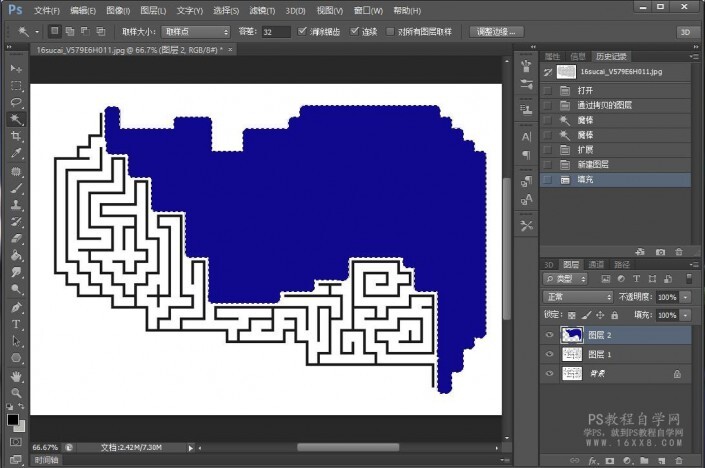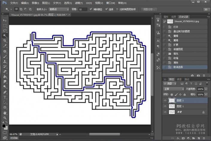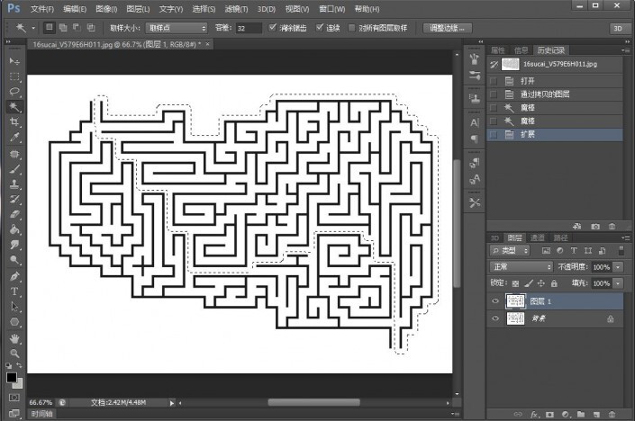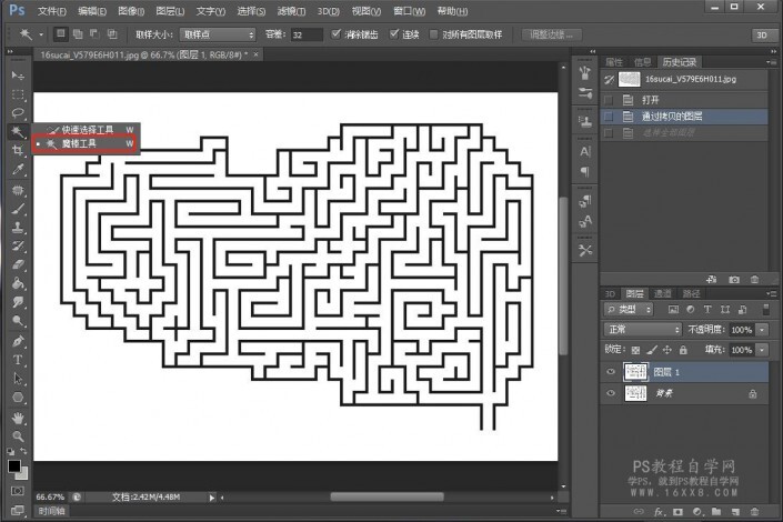 一、导入一张迷宫图,自己百度找一个也可以,选择魔棒工具,