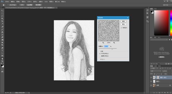 5、合并图层1 图层一副本,添加图层蒙版http://www.yuucn.com/tags/38847/,在图层蒙版执行“滤镜—杂色—添加杂色”