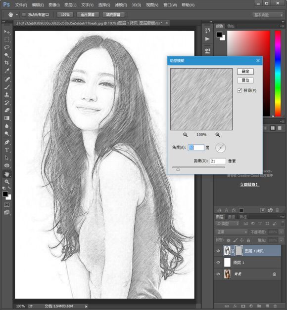 6、在图层曾蒙版上执行“滤镜—模糊—动感迷糊”
