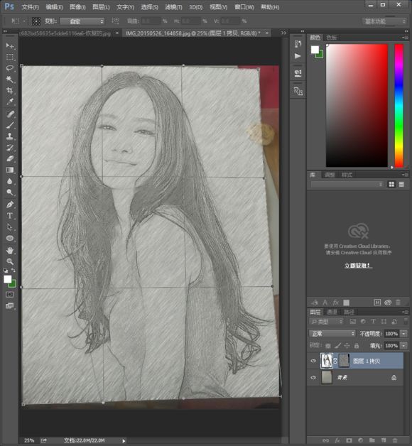 7、将图层1副本拖入背景素材,混合模式正片叠底,完成最终效果