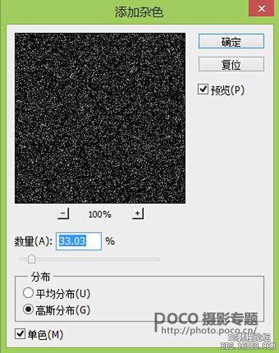 创建一个新图层,填充它为黑色(按D,然后按Alt +退格来填充前景色)。打开滤镜>杂色>添加杂色,具体参数如下: