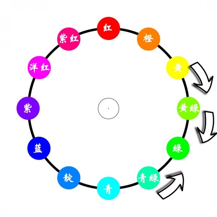 上一步的调整,相信很多小伙伴都能调整,下面主要是调整色彩,营造一种夏天的色调感觉。思路2:植被颜色以绿色为主且颜色低饱和度、高明亮度选择HSL调整工具:色相调整:将画面中的植被颜色也就是黄色和绿色和浅绿色往绿色方向移动,具体可以看这张图,原理就是将颜色进行统一。