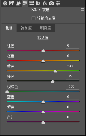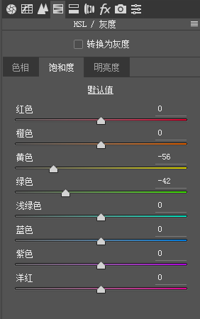 饱和度调整:这步主要就是将植被的颜色-黄色和绿色的饱和度降低。