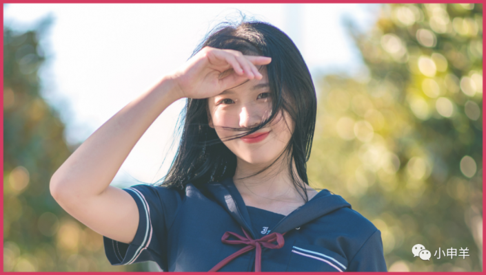 (2)背景是虚化的校园风景,由于背景虚化很严重,因此人物相当清晰;