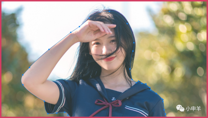 (2)女孩手臂与背景构成一处闭合区域,因此继续使用钢笔工具勾勒路径;