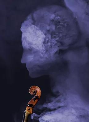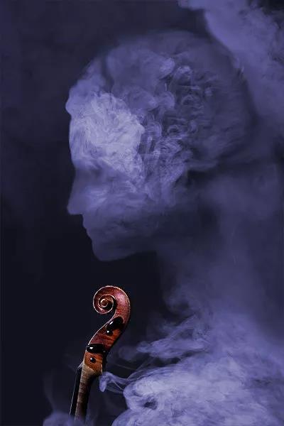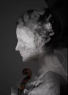 19、使用Ctrl + J 复制带有纵向的图层并将其放在烟雾层上方。使用多边形套索工具选择小提琴。使用“ 选择”>“ 反转”反转选择,并使用“删除”按钮删除选区内的所有内容。 做一个新的选择,使用小提琴形状多边形套索工具,并使用删除不必要的背景删除再次按钮。使用Ctrl + D取消选择选择。如果仍然有问题的区域与背景的遗骸,可以通过使用删除解决。