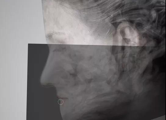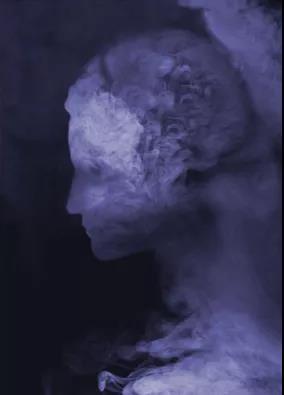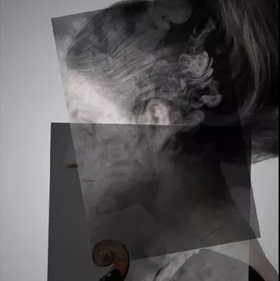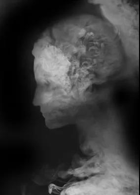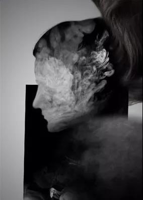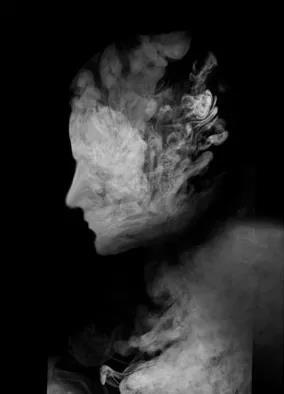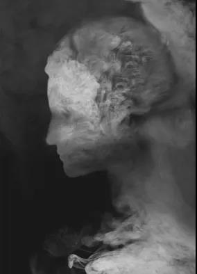 15、合并除背景图层(纵向)以外的所有图层。我们现在只有两层:肖像层和烟雾层。将烟雾层的图层不透明度设置为50-70%,并使用涂抹工具调整轮廓。