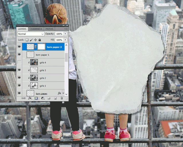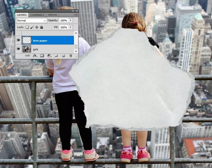 如果要添加更撕裂的边缘效果,则可以使用“ 画笔工具”并#ffffff在“ 撕纸2”层内 使用颜色进行绘画。