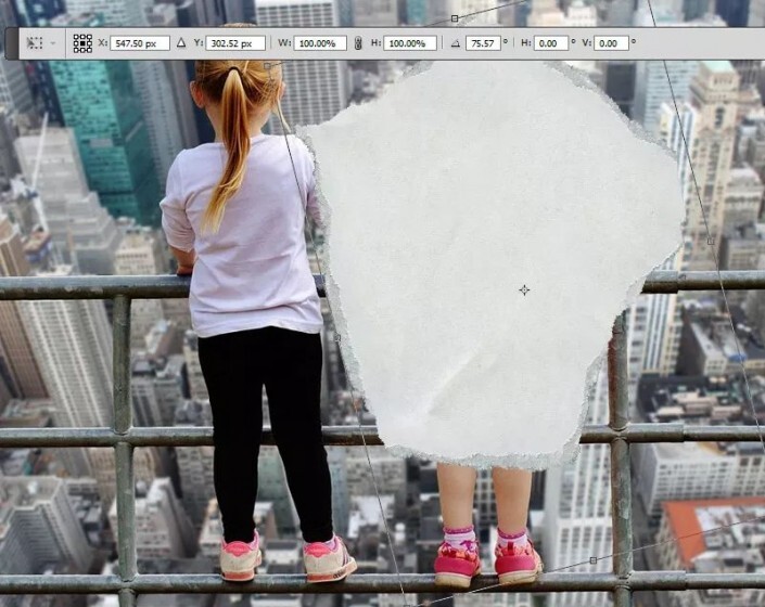 第3步按Ctrl-T旋转撕纸,并将其放在要变成素描的区域上。