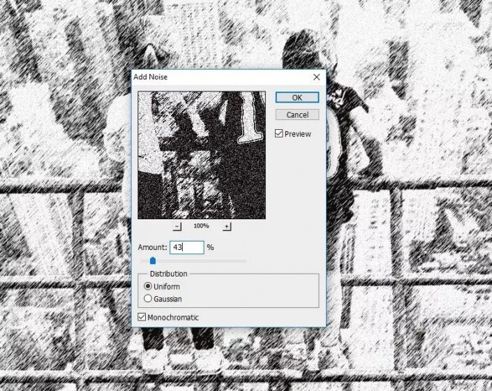 第3步转到滤镜>杂色>添加杂色。
