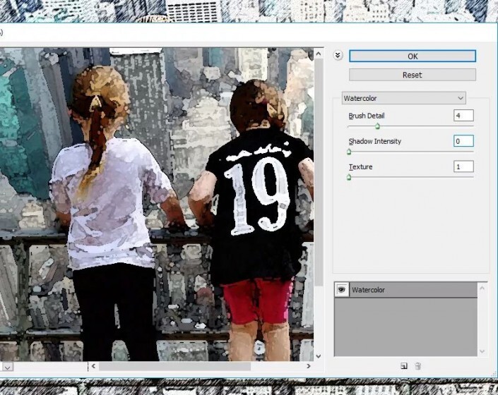 第2步转到 滤镜库>艺术效果>水彩。
