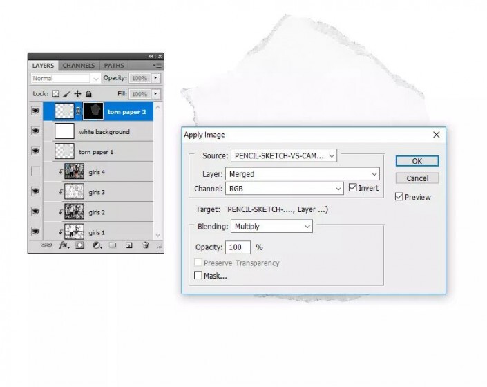 第4步单击“ 撕纸2” 图层蒙版缩略图。转到图像>应用图像。