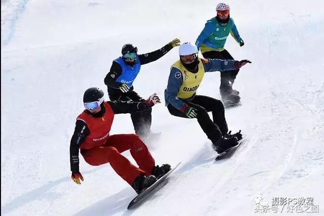 下面就开始为滑雪素材图层建立图层蒙板,看过上一节内容,都知道怎么建立吧,在图层面板上找到建立按钮,就不细说了。添加蒙板后,将前景色与背景色设置为白在上,黑在下。在工具栏中选择橡皮擦工具(快捷键E):