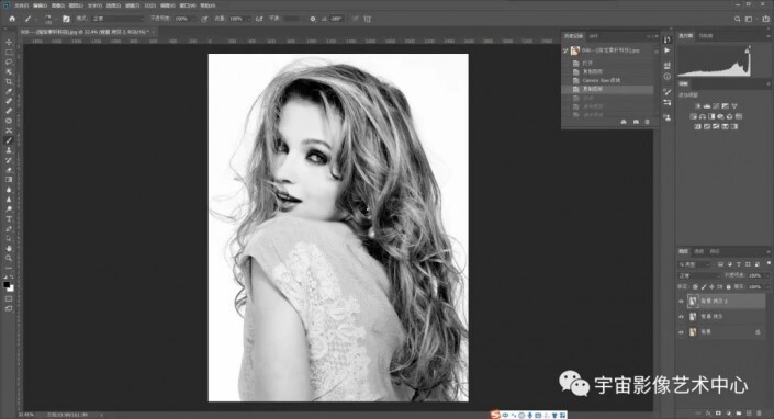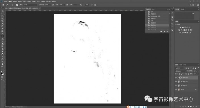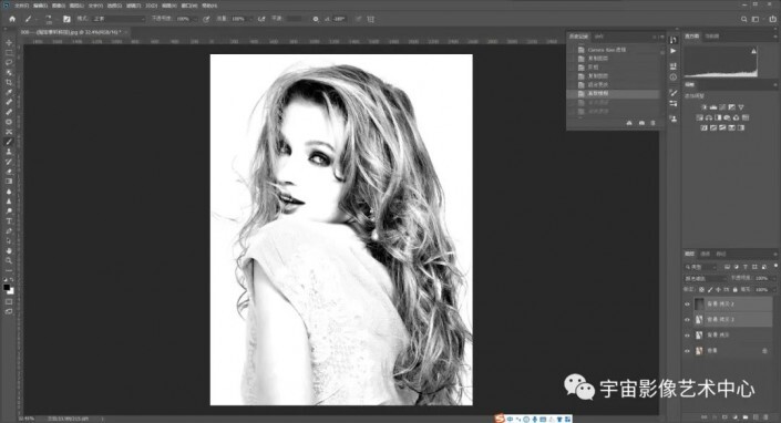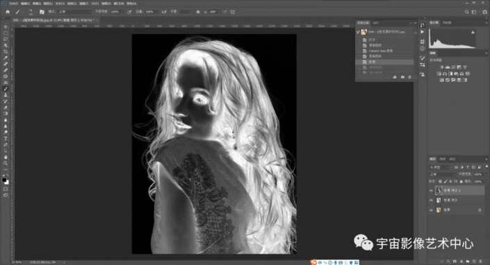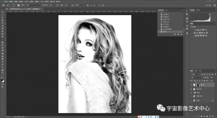 17、关闭黑白底片图层,用正常圆画笔在图层2上涂抹,人物就显现出来了,但是没有素描的效果