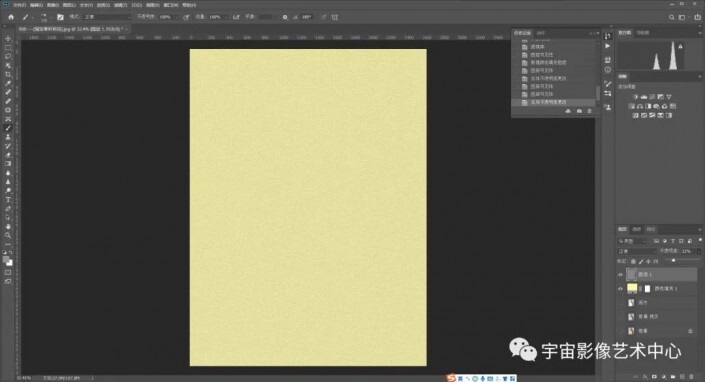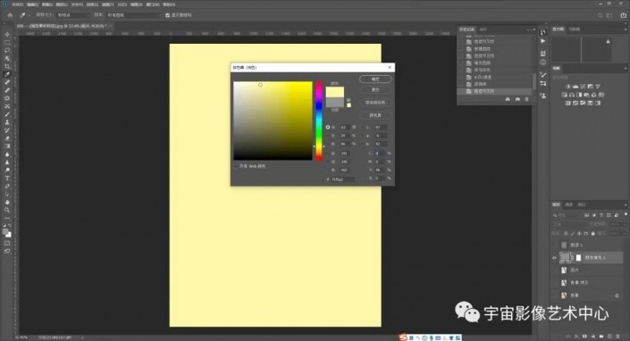 10、关闭图层1,在下方添加纯色调整图层添加淡黄色