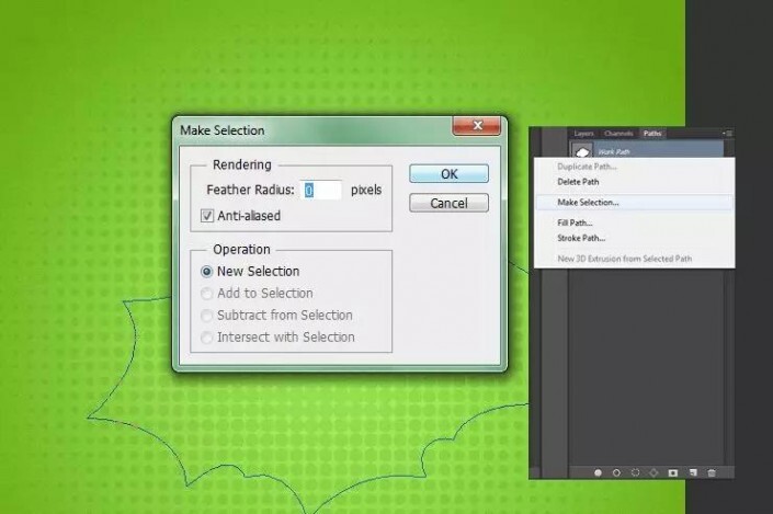 6、转到“路径”选项卡,右键单击刚刚创建的路径,然后单击“选择”及“确定”。