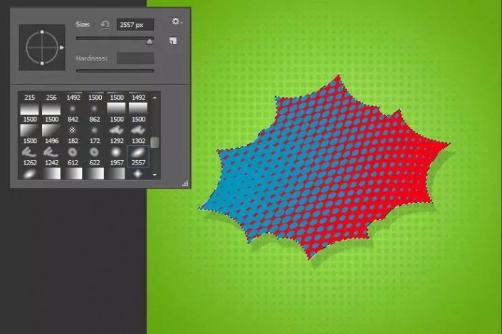 8、创建一个新图层。通过单击Ctrl并选择缩略图图像,从上一个图层中进行选择。再次抓取画笔工具并使用半色调画笔将其放入文档中,如下所示。可以使用任何颜色。
