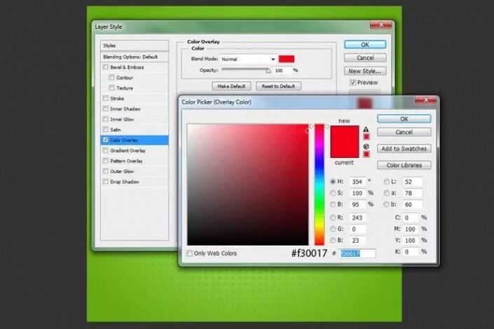 7、用任何颜色填充此选择,然后双击该图层以应用“颜色叠加”和“投影”。