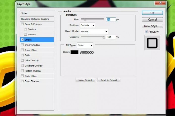 22、现在重复上一步骤添加笔画。创建一个新图层并将其放在所有文本图层下方。通过按住Ctrl和Shift键,从所有第一个和最后一个P,O,W和感叹号图层中进行选择。用黑色填充这一层。在此图层中添加黑色笔触。