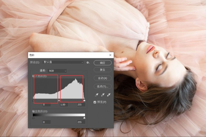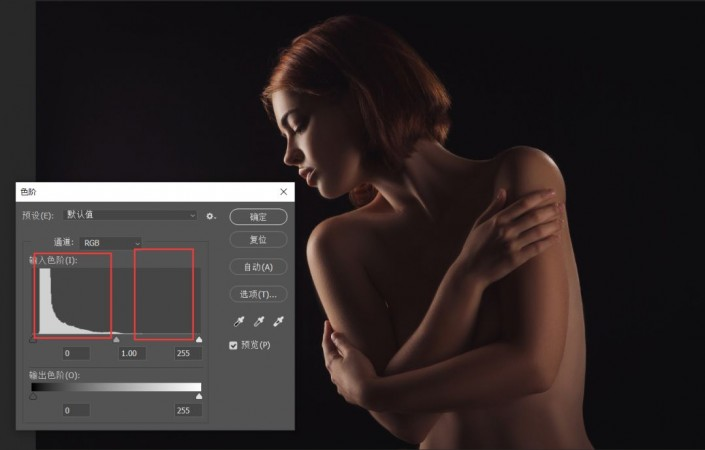 在这幅图像中,直方图黑色滑块的区域明显比白色滑块多,所以这幅图是暗色调的
