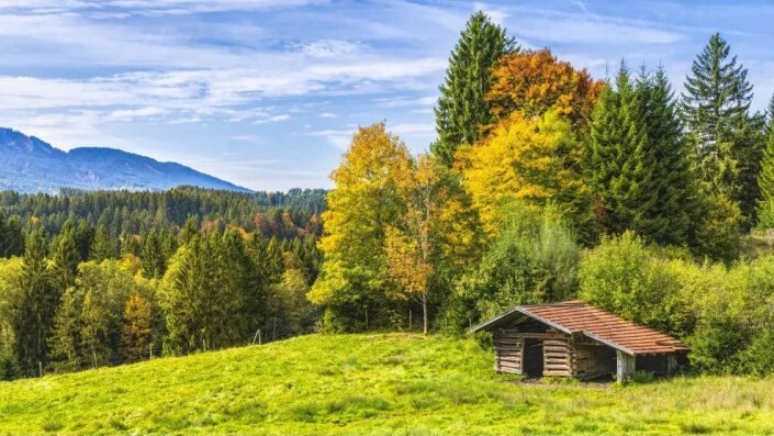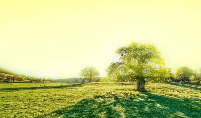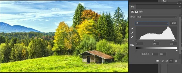 这里我认为他的草地和树不够绿我想把它变得绿一点,我们只需要在绿色通道中增加他的绿色信息