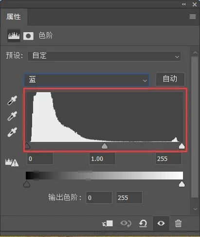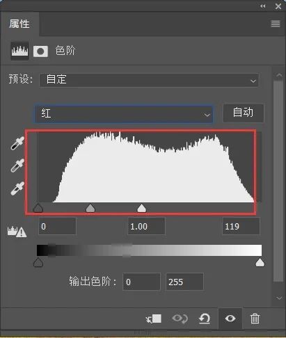 这里告诉大家一下,滑块是怎么使用的,黑色滑块表示暗部,向右会扩大暗部信息,中间的灰色滑块是表示中间调,向右增加亮部,想左增加暗部,白色滑块向左是增加亮部。同理在红绿蓝三个通道中也是这样的。