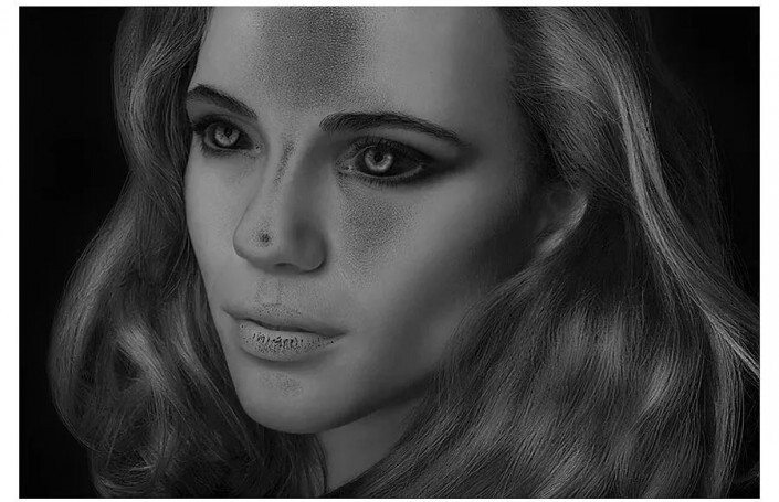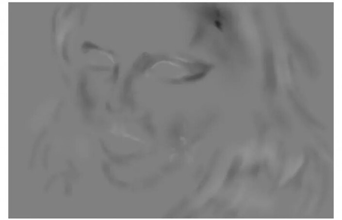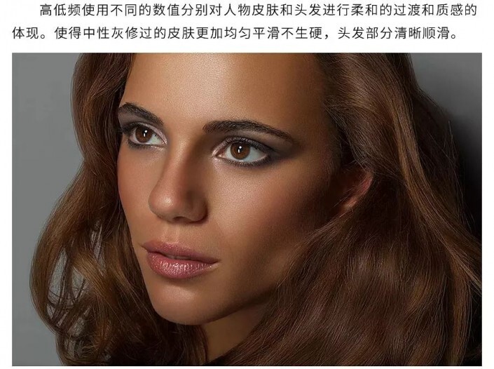 高低频使用不同的数值分别对人物皮肤和头发进行柔和的过渡和质感的体现。使得中性灰修过的皮肤更加均匀平滑不生硬,头发部分清晰顺滑。