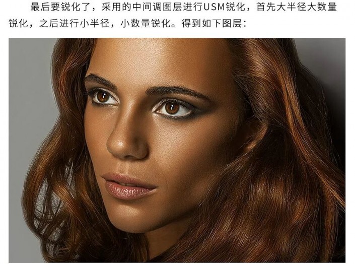最后要锐化了,采用的中间调图层进行USM锐化,首先大半径大数量锐化,之后进行小半径,小数量锐化。得到如下图层: